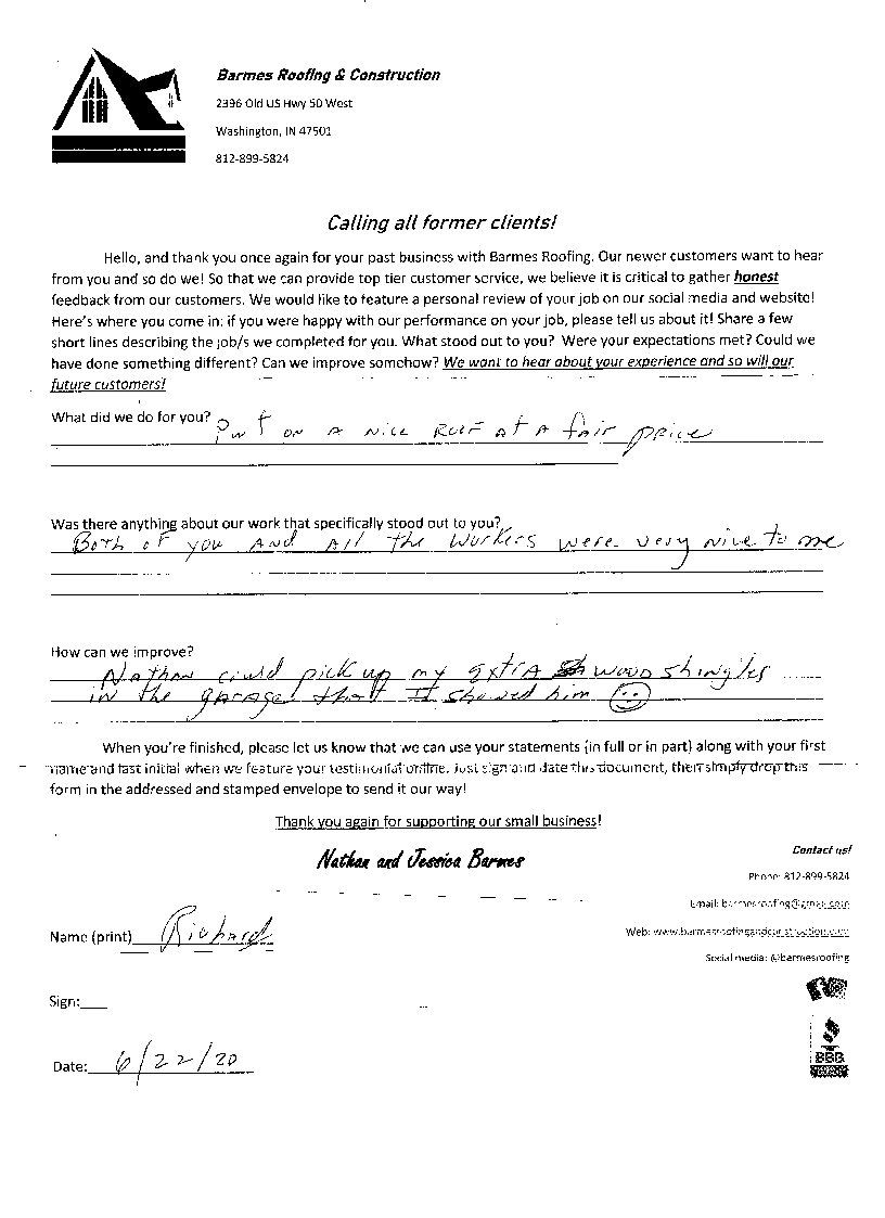 Richards roof was h-u-g-e and it was shingled with wooden shaker shingles. We were happy to help him make the update to architectural shingles to compliment is already gorgeous home. Not to mention, Richard was wonderful to work with!! One of the nicest people you're likely to meet. Thank you for taking the time to fill out the survey Richard!